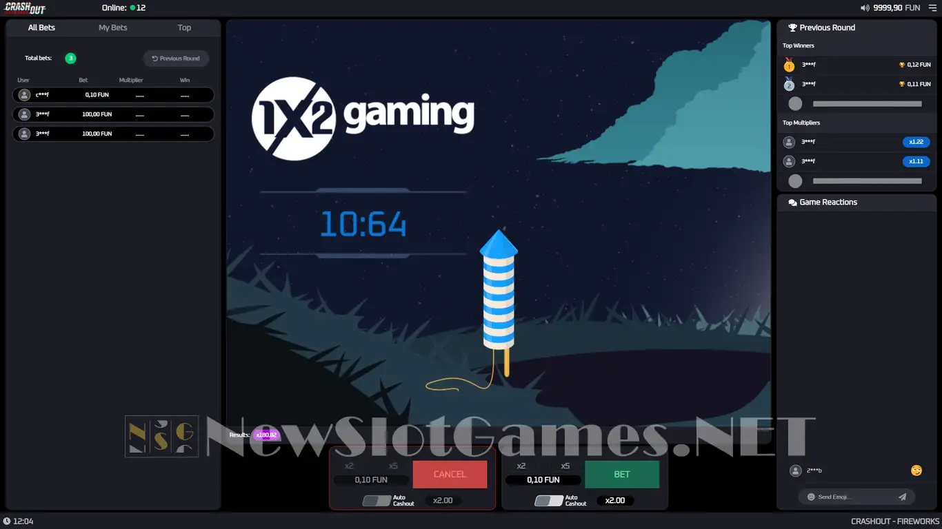 Yes! NewSlotGames offers the latest version of the Crashout - Fireworks demo game directly from 1x2 Gaming servers.