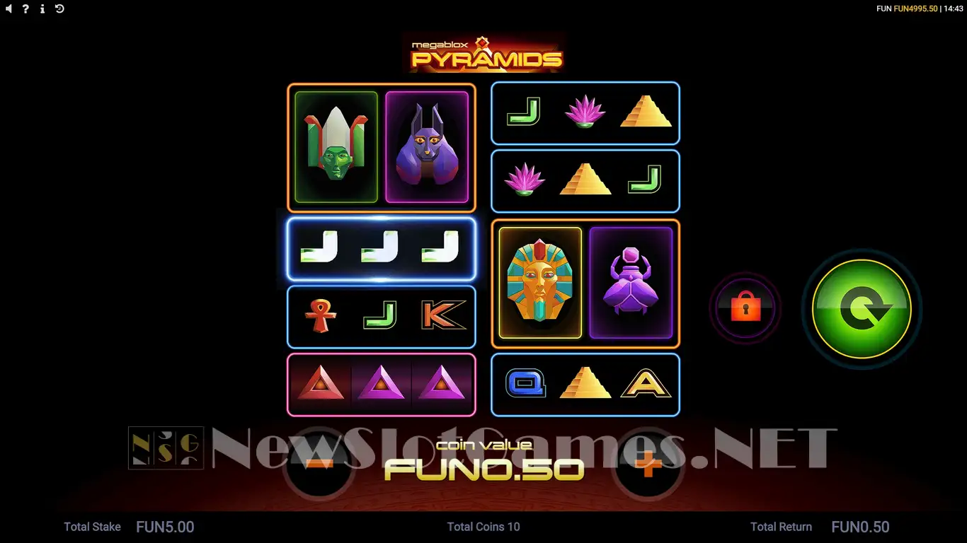 Megablox Pyramids offers a unique gameplay experience with its mechanic of spinning 4 different types of reel sets that can be locked at any moment. The game is easy to pick up and play, making it appealing to players who enjoy traditional new slots with a twist.