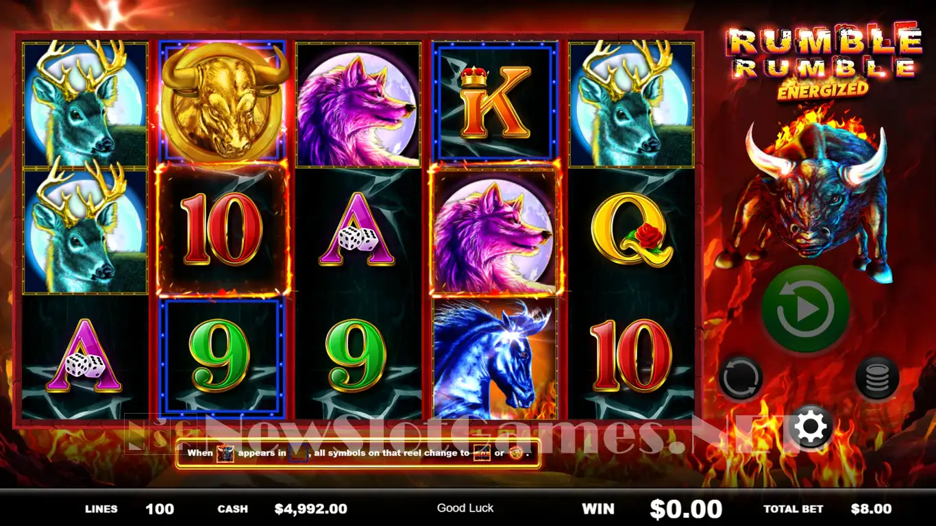 Yes! NewSlotGames offers the latest version of the Rumble Rumble Energized demo game directly from Ainsworth servers.