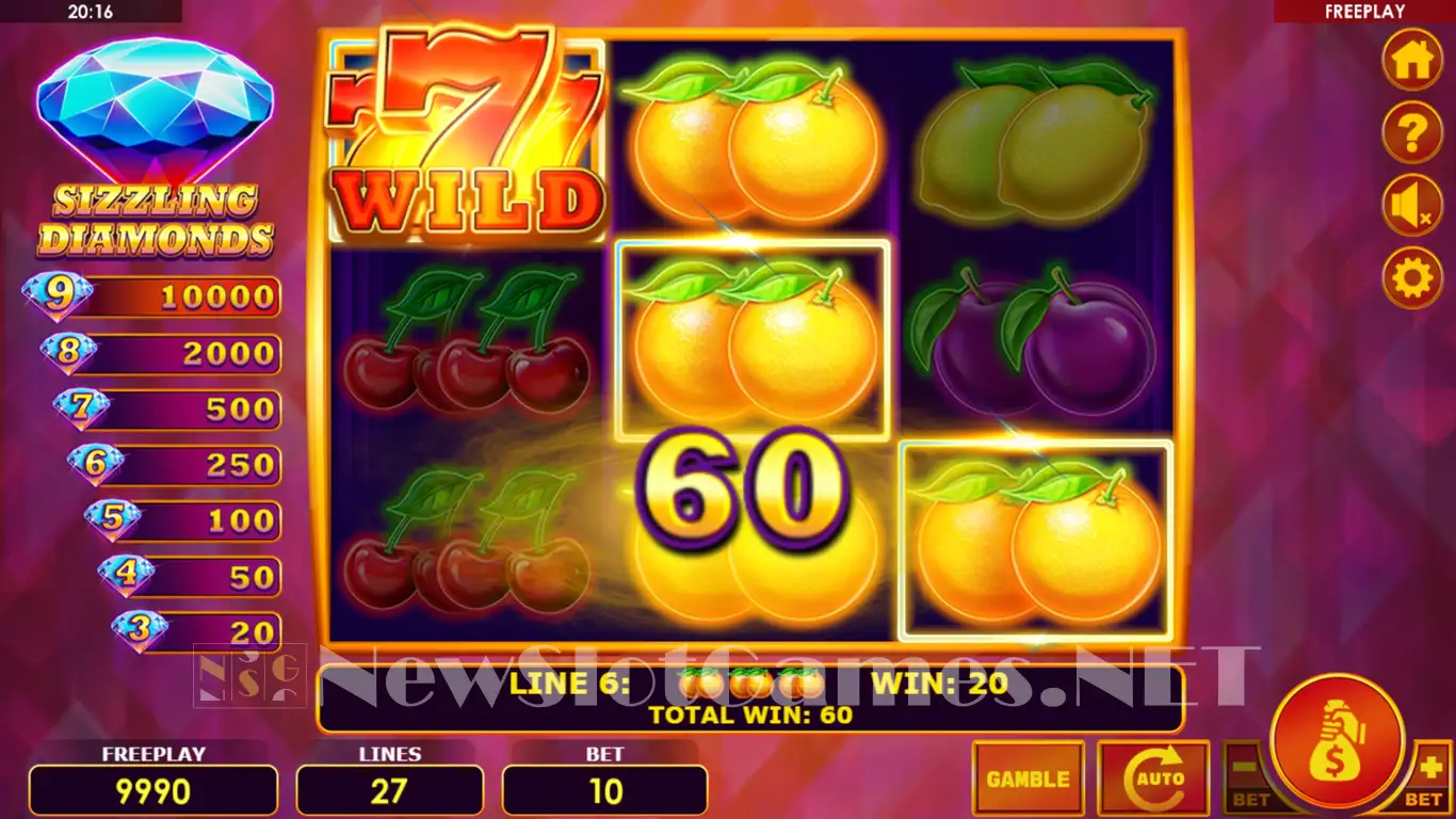 Yes! NewSlotGames offers the latest version of the Sizzling Diamonds demo game directly from Amatic servers.
