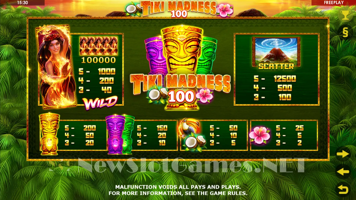 Yes! NewSlotGames offers the latest version of the Tiki Madness 100 demo game directly from Amatic servers.