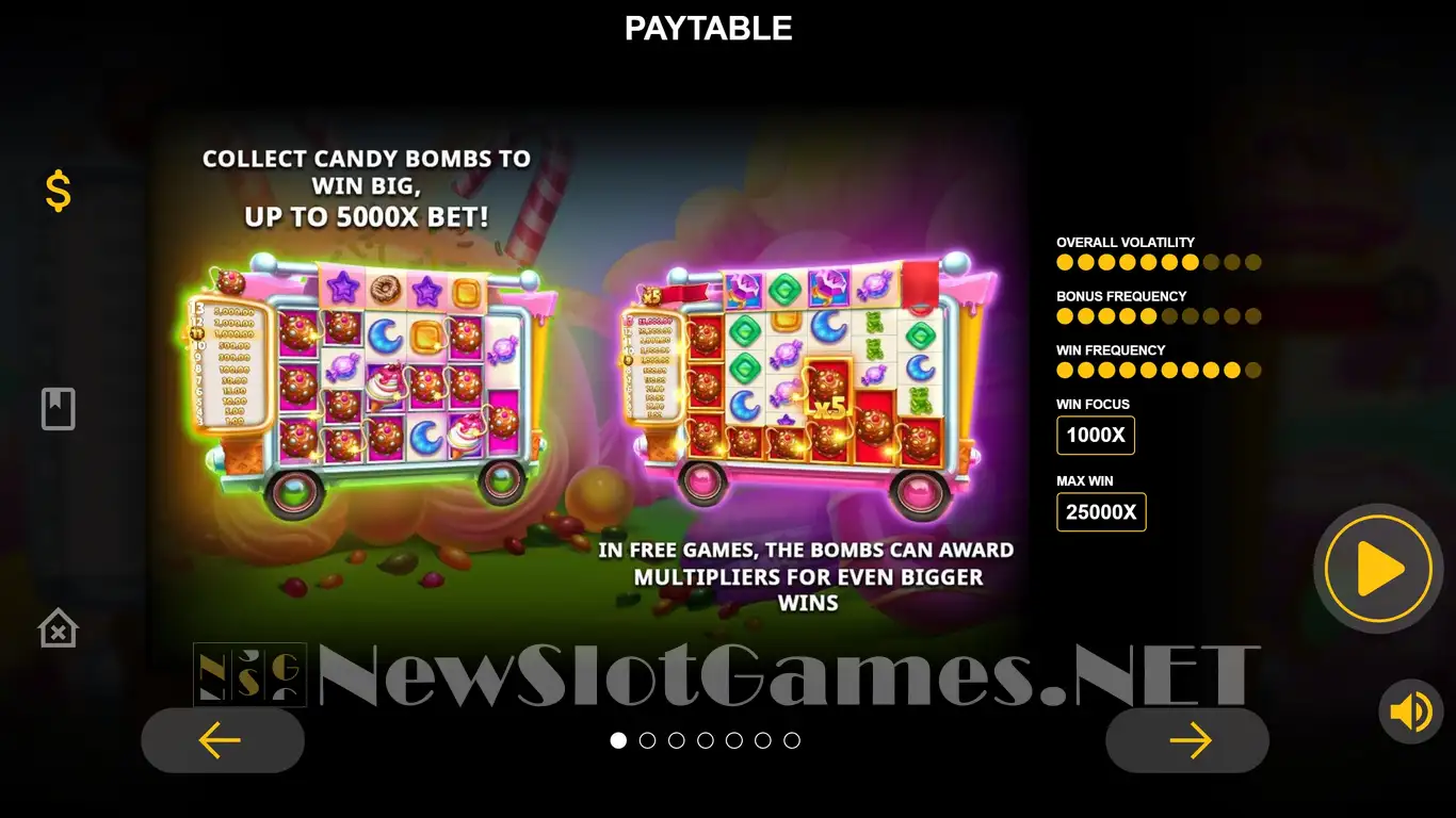 A big advantage for them is that the scattered Candy Bombs become sticky when they land, and so it gets easier to claim prizes from the ladder. 2X to 5x multipliers may appear next to these symbols as well, improving the potential wins, but they are removed if you don’t get any new Candy Bombs to appear.