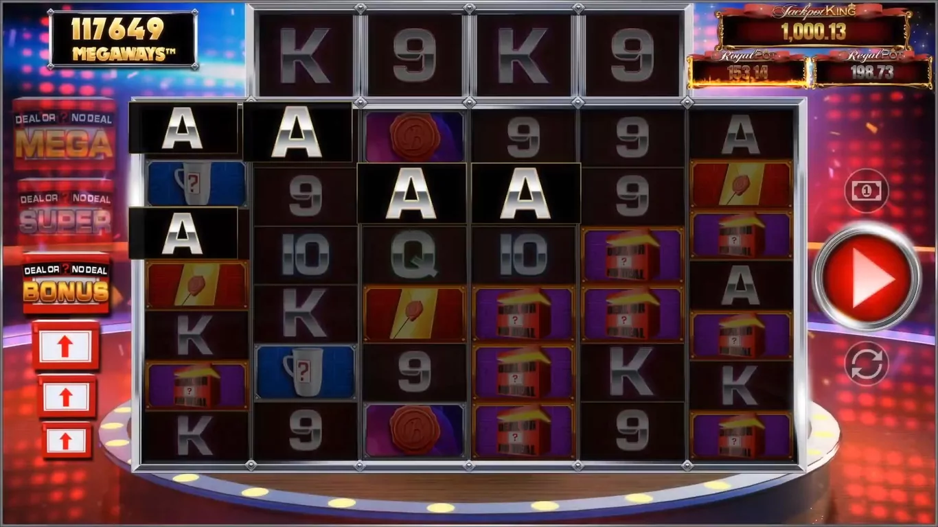 A Megaways slot machine will have a random number of symbols selected for each round, usually between 2 and 7. With 6 reels used in Deal or No Deal, as many as 117,649 winning combinations are available per spin, provided that you get the maximum number of symbols. The middle four reels have an additional horizontal reel at the top, which will also display symbols.