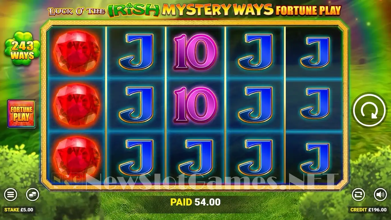 Luck O’ The Irish: Mystery Ways offers 5 reels for the regular free slot version, with 243 ways to win. It’s entirely possible to get up to four sets of reels to play on, and the number of ways to win can go up to 16,807. It’s considered highly volatile. The big features include the Fortune Play (paid), the fact that the Match 3 system pays easier, mystery symbols, and Money Spins. With rewards of up to 3,100x the stake on the table, it’s not quite as big of a motive to check it out, once you find out about the 95% RTP.