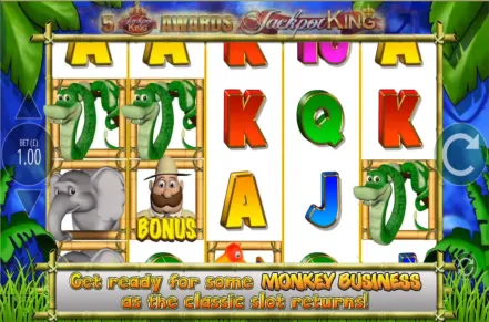Monkey Business Deluxe is the new version for the well-known classic slot machine, a popular game in its day, and one that was in need for a refresh to keep up with our times. Blueprint Gaming is the one that created this slot machine, which features jungle themed graphics and a Jackpot King progressive.