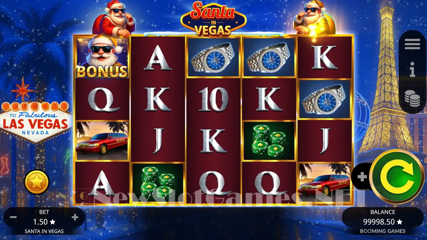 Yes! NewSlotGames offers the latest version of the Santa In Vegas demo game directly from Booming Games servers.