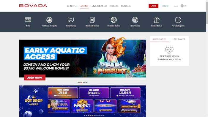 One of the truly large gambling destinations that exist online right now, Bovada is a casino and a sportsbook, plus it offers poker, as well as horse racing betting. There are a lot of things to do for a player that gives this casino a shot, and it’s been that way since 2011, the year when it launched. The casino is the one that we’re going to cover, with its slot machines that have gotten over 4 billion spins since the start of the site, giving you a pretty good idea of just how big and appreciated this online casino is.