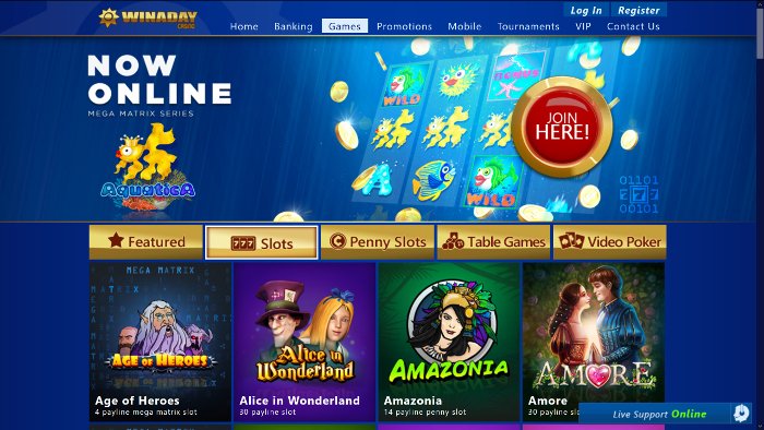 Win A Day has hundreds of games in their vault and they are separated into the following categories: slots, penny slots, table games, and video poker. This online casino has proprietary software and it retains its intellectual property rights.