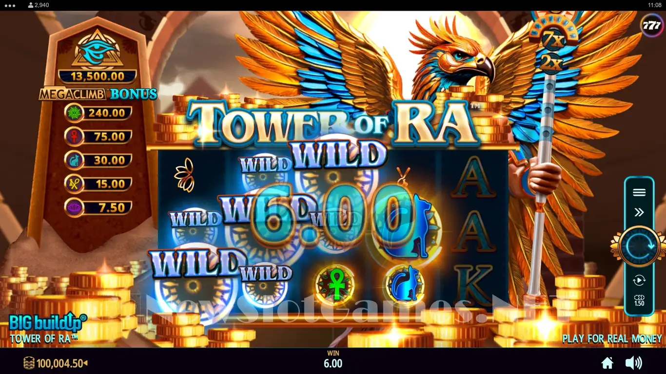One of the many Ancient Egypt-themed slots you get a chance to check out right now, Tower of Ra, is coming thanks to Crazy Tooth Studio’s efforts. It has the right graphics for a modern release, and the 5 reels it spins for you will have 21 active lines. While you will discover a slot with high volatility, there is also a 9,000x top jackpot, which, alongside a 96.51% RTP, feels like it provides all the motivation you need to check it out. Doing this requires bets from $0.25 to $25, meaning that you can customize it depending on the budget you’re working with.
