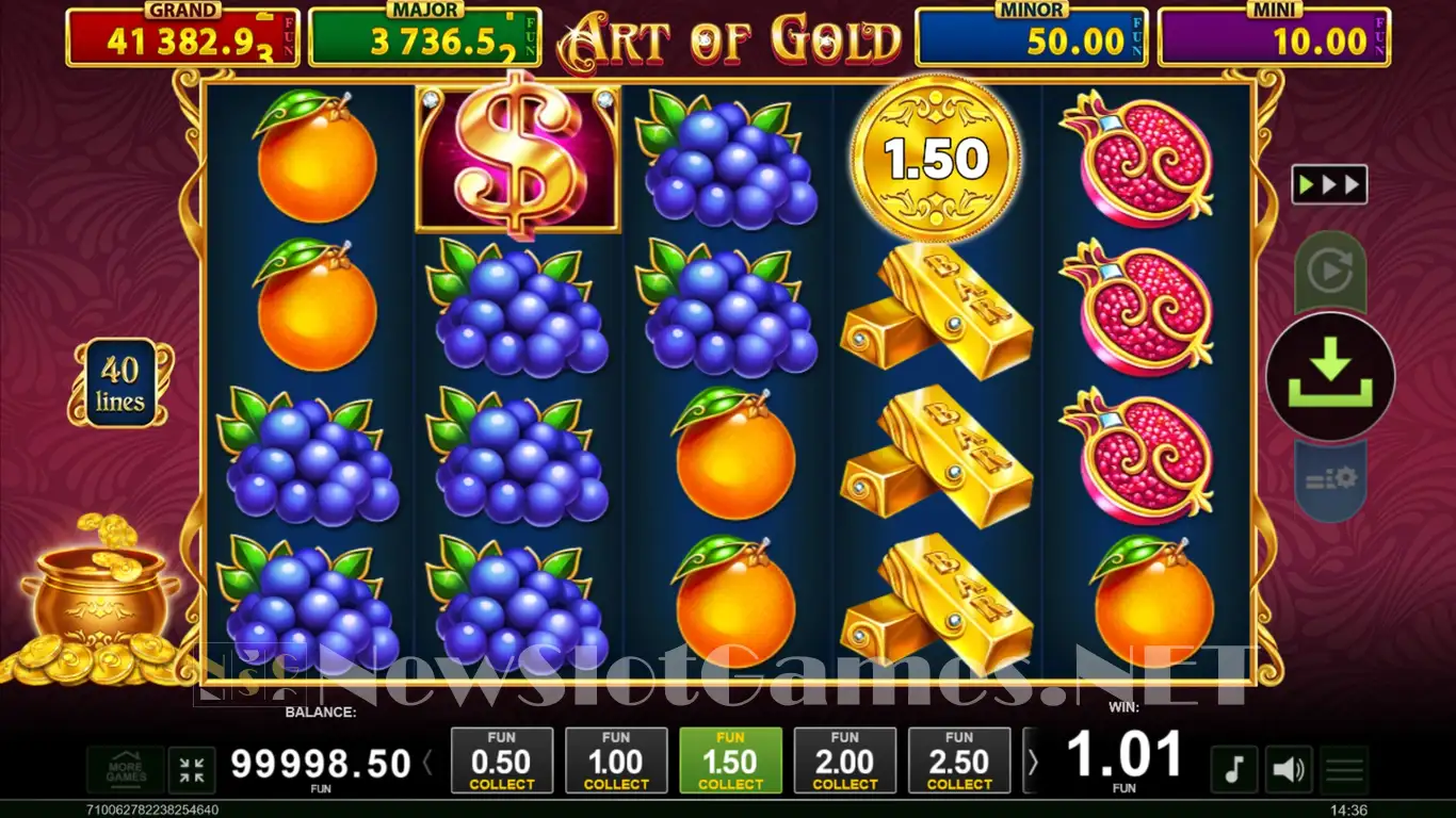 Yes! NewSlotGames offers the latest version of the Art of Gold Golden Coins Link demo game directly from Amusnet (EGT) servers.