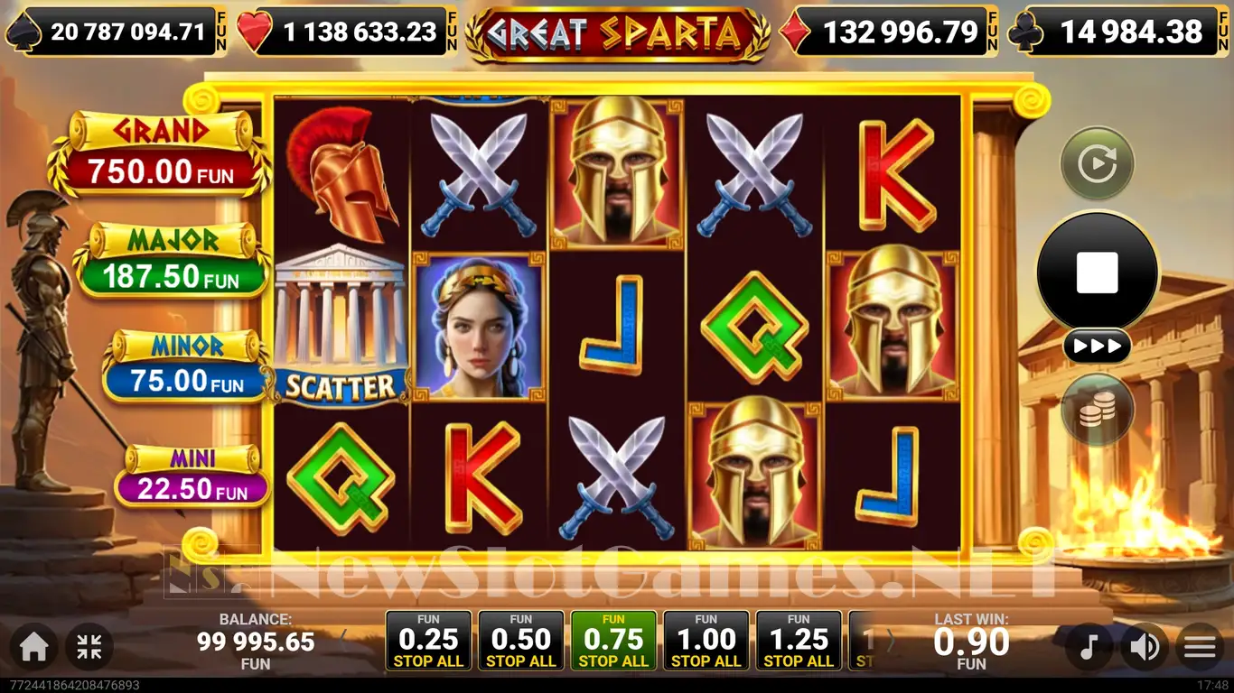 Yes! NewSlotGames offers the latest version of the Great Sparta demo game directly from Amusnet (EGT) servers.