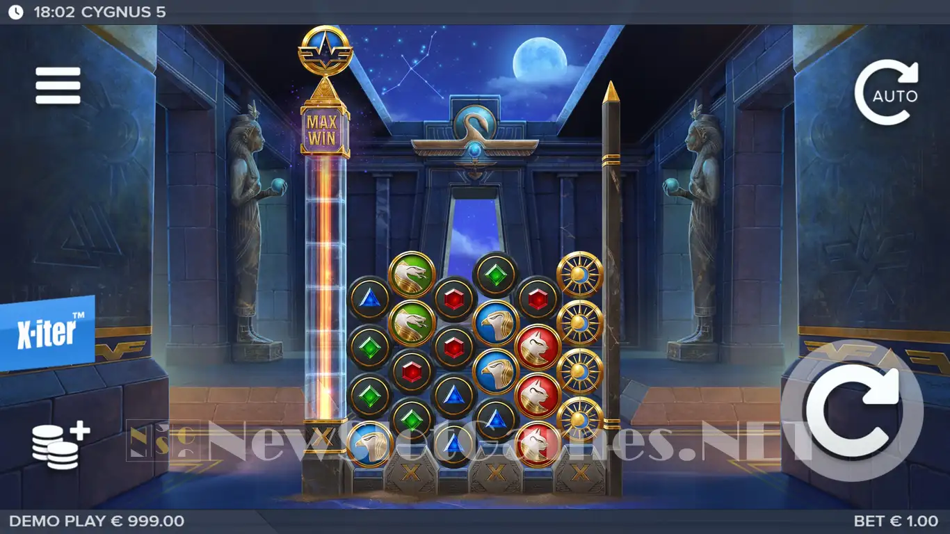 The game area of Cygnus 5 takes us to an ancient temple, with statues visible on both sides and the night sky showing some of the constellations that people have been admiring for a long time now. The symbols they added to those 6 reels will be a mix of gemstones and representations of Egyptian deities (Horus, Snake, Bastet, and the Sun)
