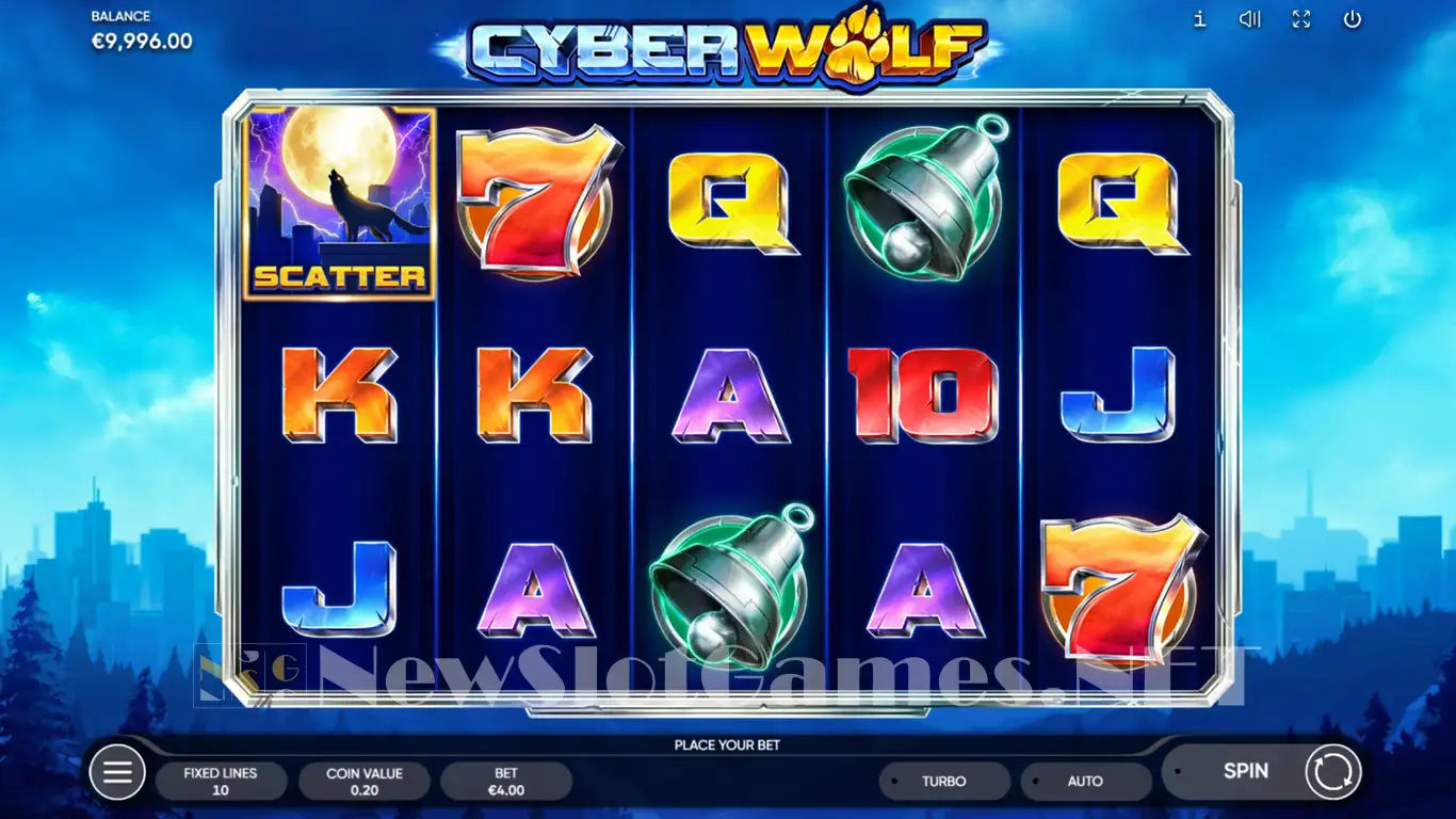 The game has a bunch of interesting symbols to offer. The royal card symbols appear in this title too and they come in various colors. They’re accompanied by the red number 10 symbol. Then there are some other symbols like the cyber wolf himself as well as his cyber claw, the lucky 7 symbol and a cyber bell. Don’t forget about the special symbols on the reels.