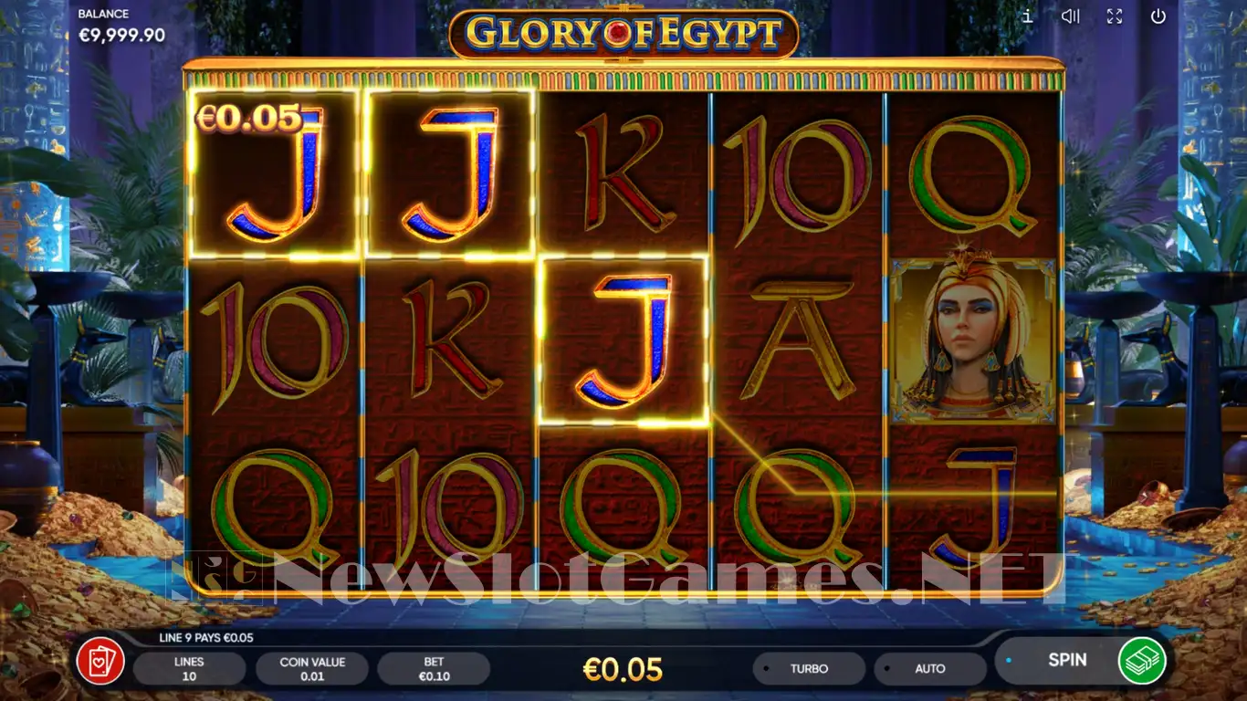• €/$0.01 per spin is a starting bet in the Glory of Egypt