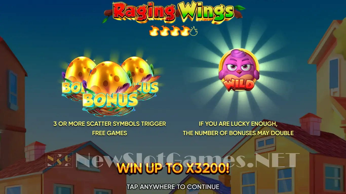 You’re playing on 10 paylines in Raging Wings, and there are 5x3 reels to spin each round. A 3,200x top jackpot is your target inside, which doesn’t sound great in a game with high volatility. The 96.06% RTP is fine, though. The features that feel important include the wild symbol and the free spins, with the latter delivering various modifiers.