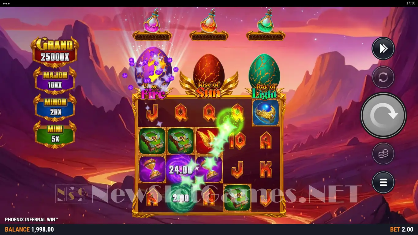 Yes! NewSlotGames offers the latest version of the Phoenix Infernal Win demo game directly from Foxium servers.