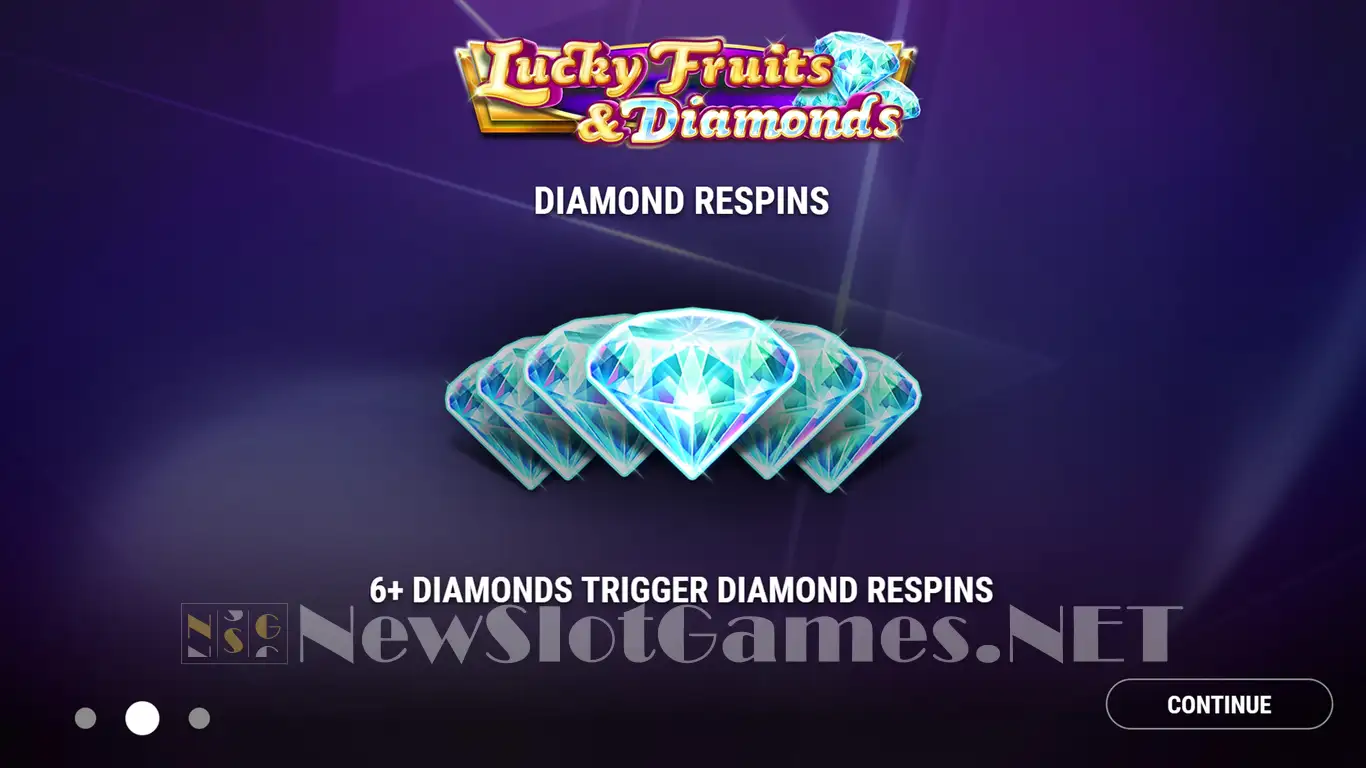 The biggest feature that Lucky Fruits & Diamonds slot seems to offer is going to revolve around the Diamond Respins. For those to trigger, you need 6+ Diamonds anywhere on the reels. There are 3 respins, and the reels can only get the Diamond symbols and their prizes. The respins reset when the Diamonds reveal a prize. Uncover all Diamonds, and you also claim a 1,000x Grand Jackpot. Its other features involve 9 free spins via scatters and a wild symbol.