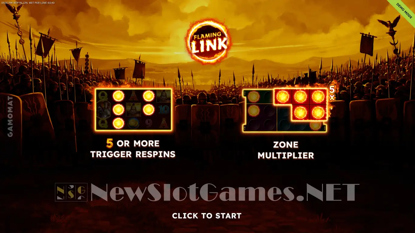 Yes! NewSlotGames offers the latest version of the Roman Legion Flaming Link demo game directly from Gamomat servers.