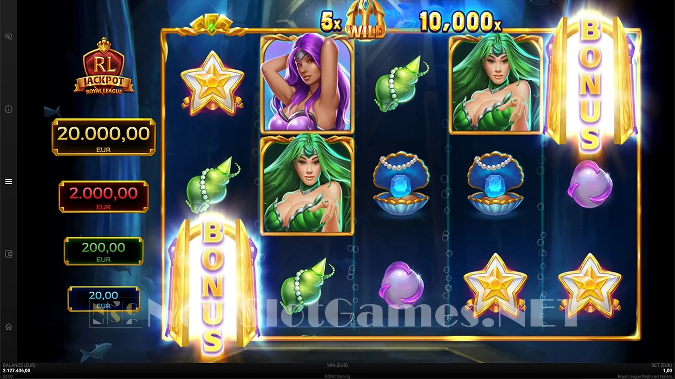 You can get paid very well in Neptune’s Harem, and it’s something that you can achieve in two ways. One is through combinations of 5 Trident Wilds, which will pay 10,000x. The other way is through the Royal League Jackpot, which can also get to 10,000x the stake.