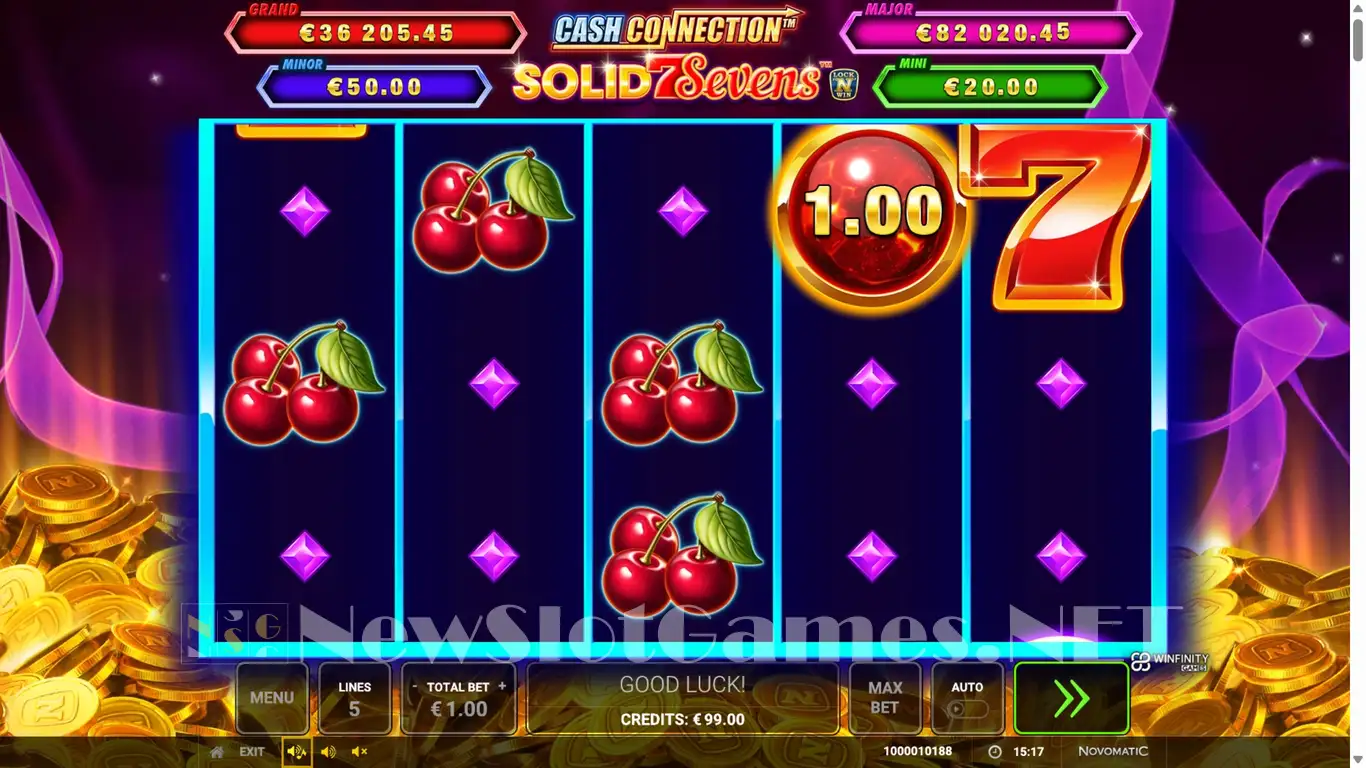 Yes! NewSlotGames offers the latest version of the Cash Connection Solid Sevens demo game directly from Greentube servers.