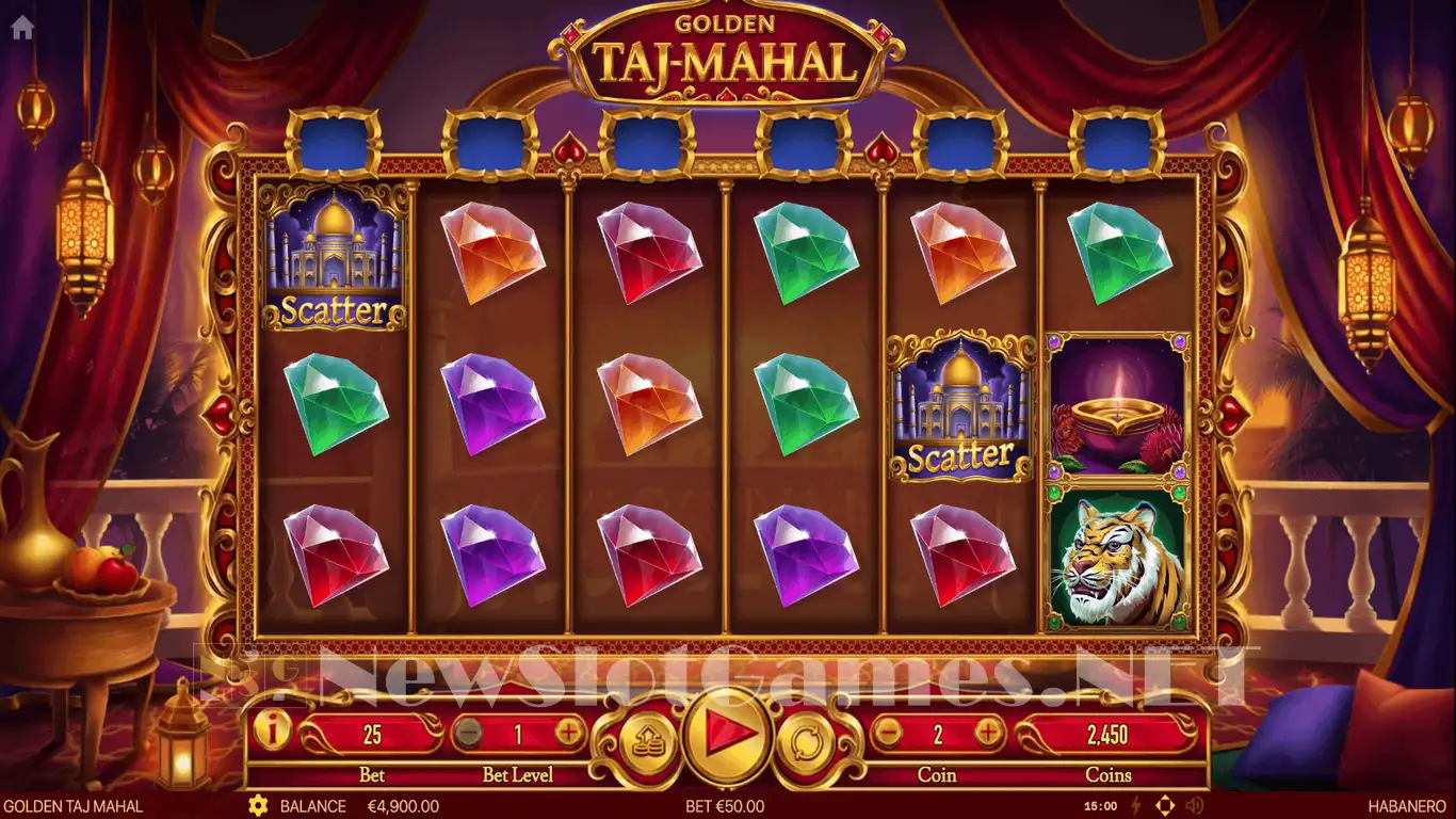 The story of the Golden Taj Mahal appears to borrow from Indian culture, and the gorgeous Taj Mahal palace proves that. On the other hand, there are also elements such as the Magic Lamp present in some symbols, so it’s not entirely clear what kind of story it’s trying to tell. The symbols do have lesser positions, with gemstones among them, but there are also icons showing a tiger, the princess, the prince, or the magic lamp.