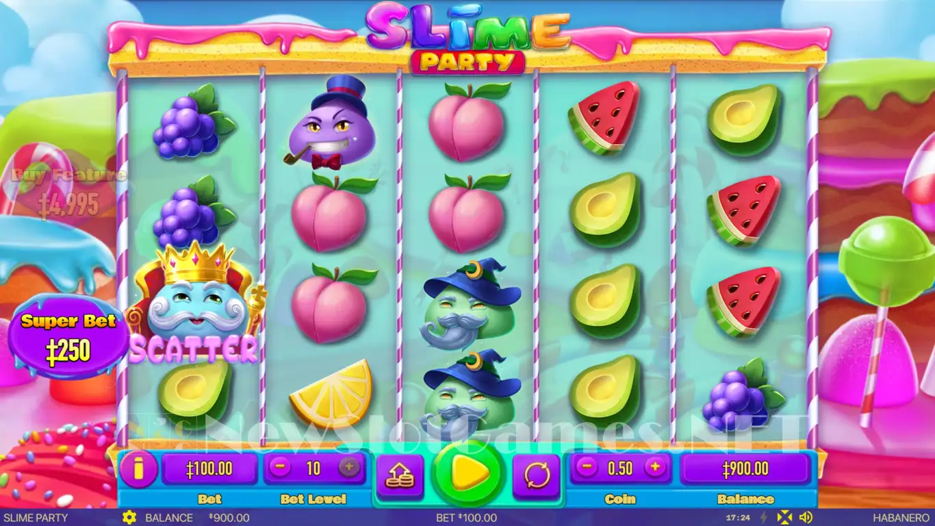 Yes! NewSlotGames offers the latest version of the Slime Party demo game directly from Habanero servers.