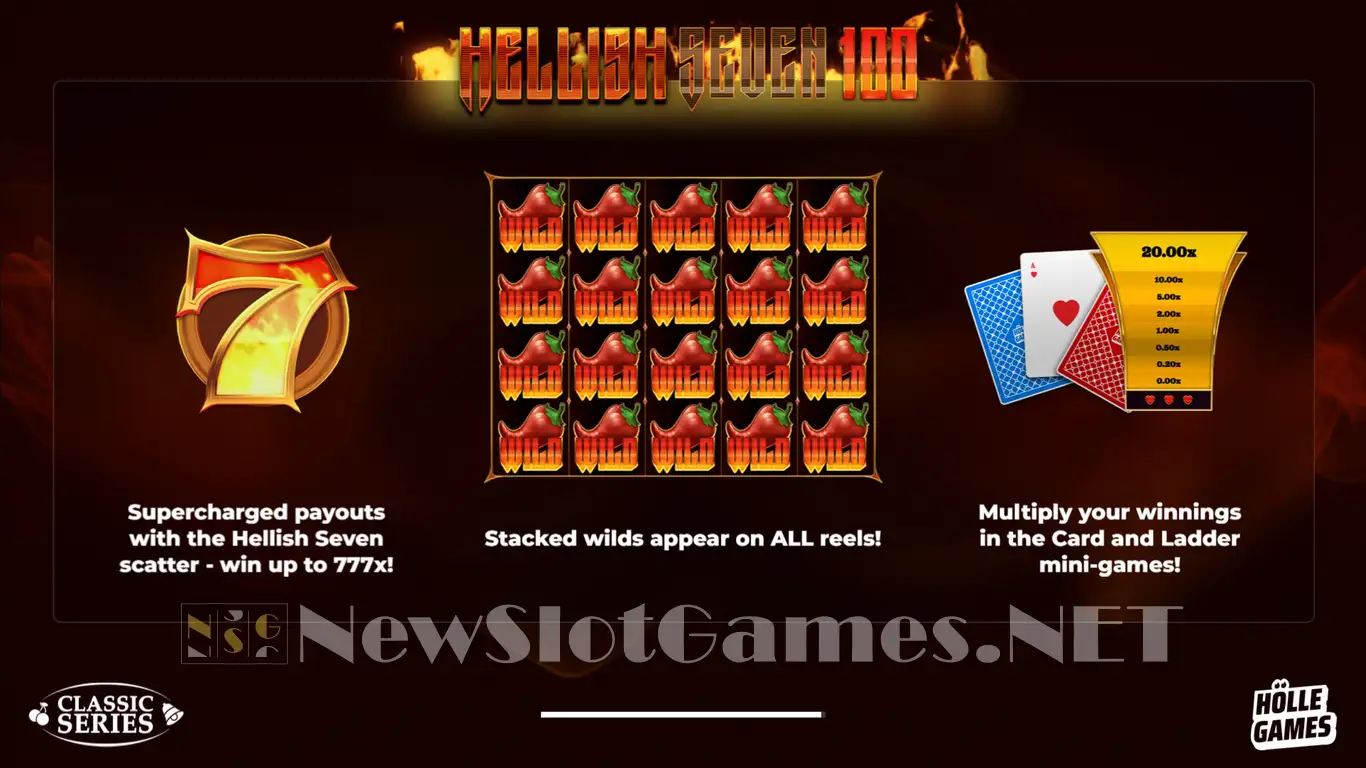 Yes! NewSlotGames offers the latest version of the Hellish Seven 100 demo game directly from Hölle Games servers.