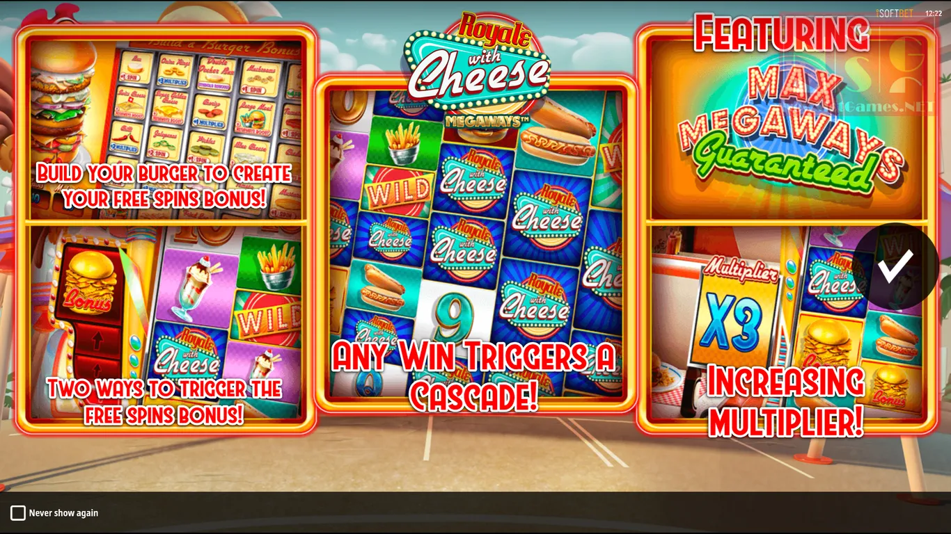 Yes! NewSlotGames offers the latest version of the Royale with Cheese Megaways demo game directly from iSoftBet servers.