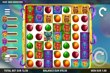 It’s a cute looking monster themed slot machine, the way we’ve seen quite a few appear over the years. In different colors, some with 2 eyes and others with 4, with hair or fur, and other modifications, the monsters might’ve looked scary in other conditions. Besides the six monster symbols, which are also the ones contributing to the feature meters, there are also fruits on the reels (watermelons, oranges and cherries). The only other symbol in view will be the wild Monster.