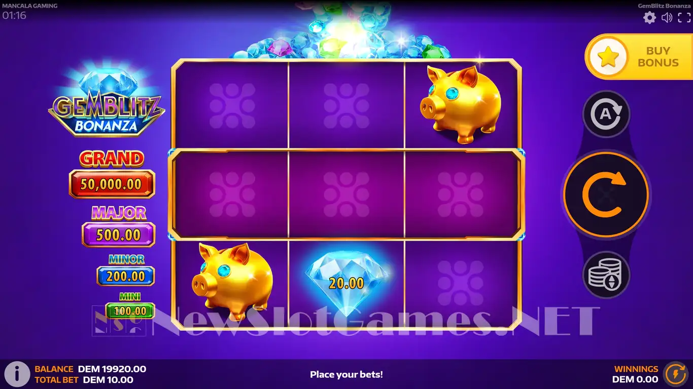 • €/$0.10 per spin is a starting bet in the GemBlitz Bonanza Deluxe