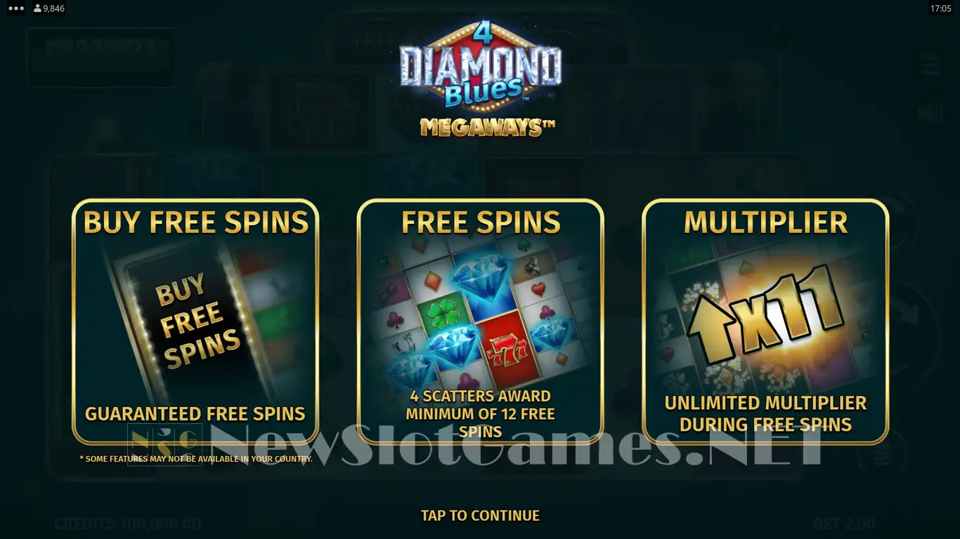 Yes! NewSlotGames offers the latest version of the 4 Diamond Blues Megaways demo game directly from Microgaming servers.