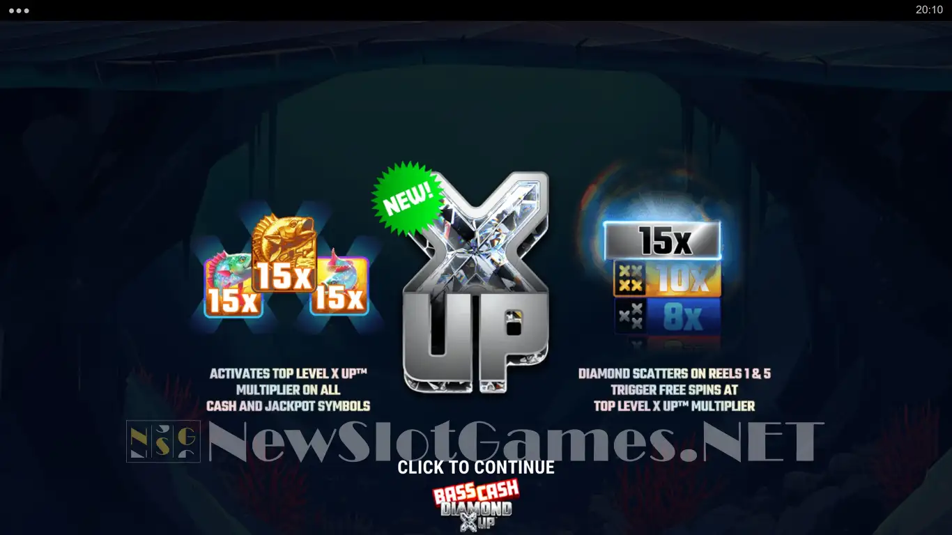 Yes! NewSlotGames offers the latest version of the Bass Cash Diamond X UP demo game directly from Microgaming servers.