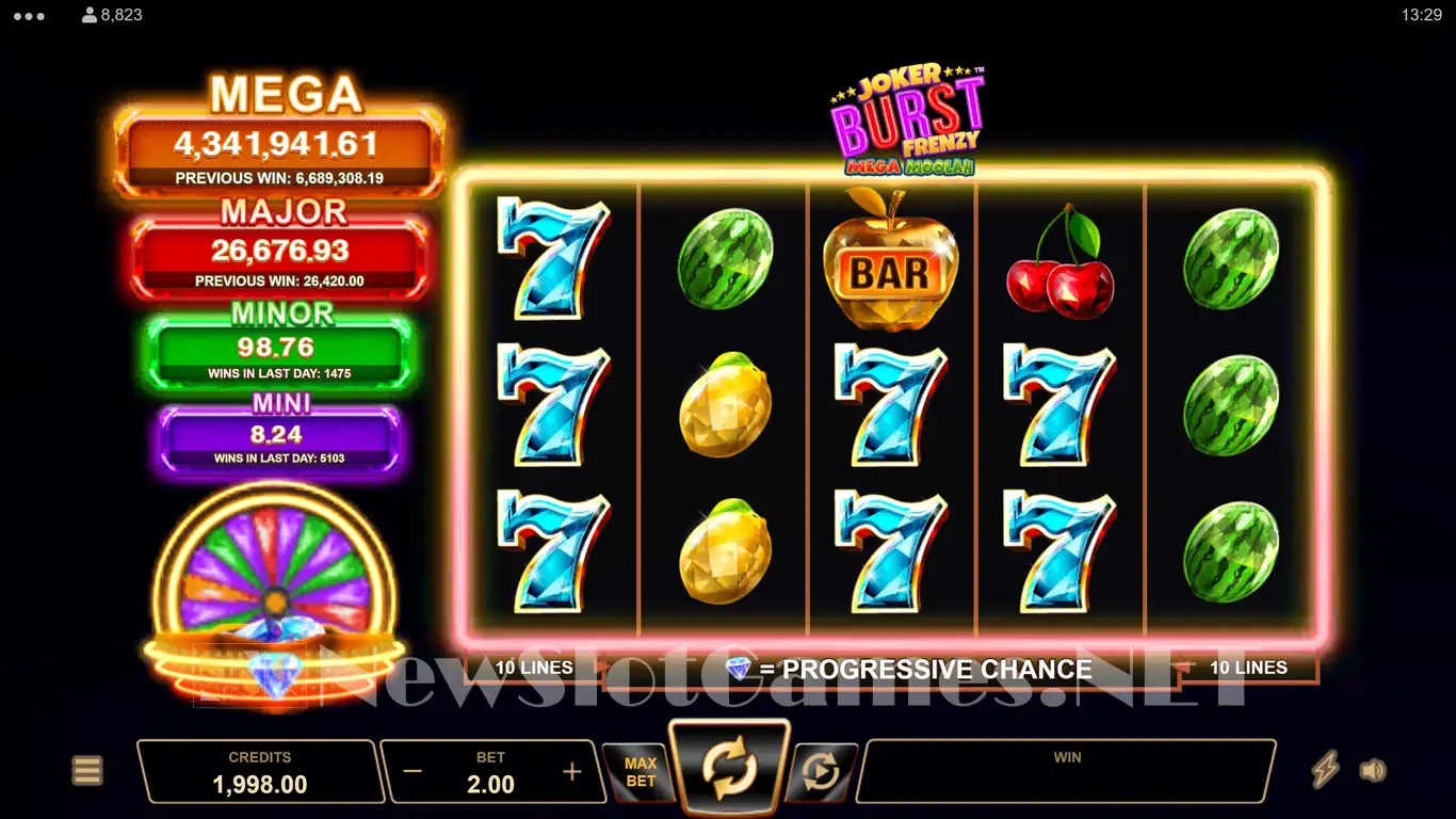 Yes! NewSlotGames offers the latest version of the Joker Burst Frenzy Mega Moolah demo game directly from Microgaming servers.