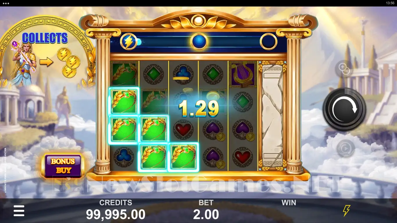 Hera Wilds will land on one reel at a time, if it does make an appearance. These are substitute symbols and may cover entire reels, with random multipliers at 2x, 3x, or 5x (if the wilds are upgraded).. They improve wins as well; they don’t just help you create combinations.
