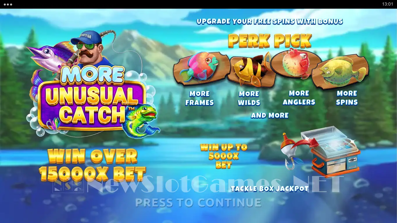 You have 20 paylines to use in More Unusual Catch, a slot machine with 5 reels. The medium volatility and the RTP of up to 96.06% are good and signal a game that’s not too punishing. If everything goes your way, wins of up to 15,000x the stake could be paid in a single round. It comes with several major features, such as regular and sticky wilds, wild sticky frames, Angler wilds, free spins, or scatters nudging respins.
