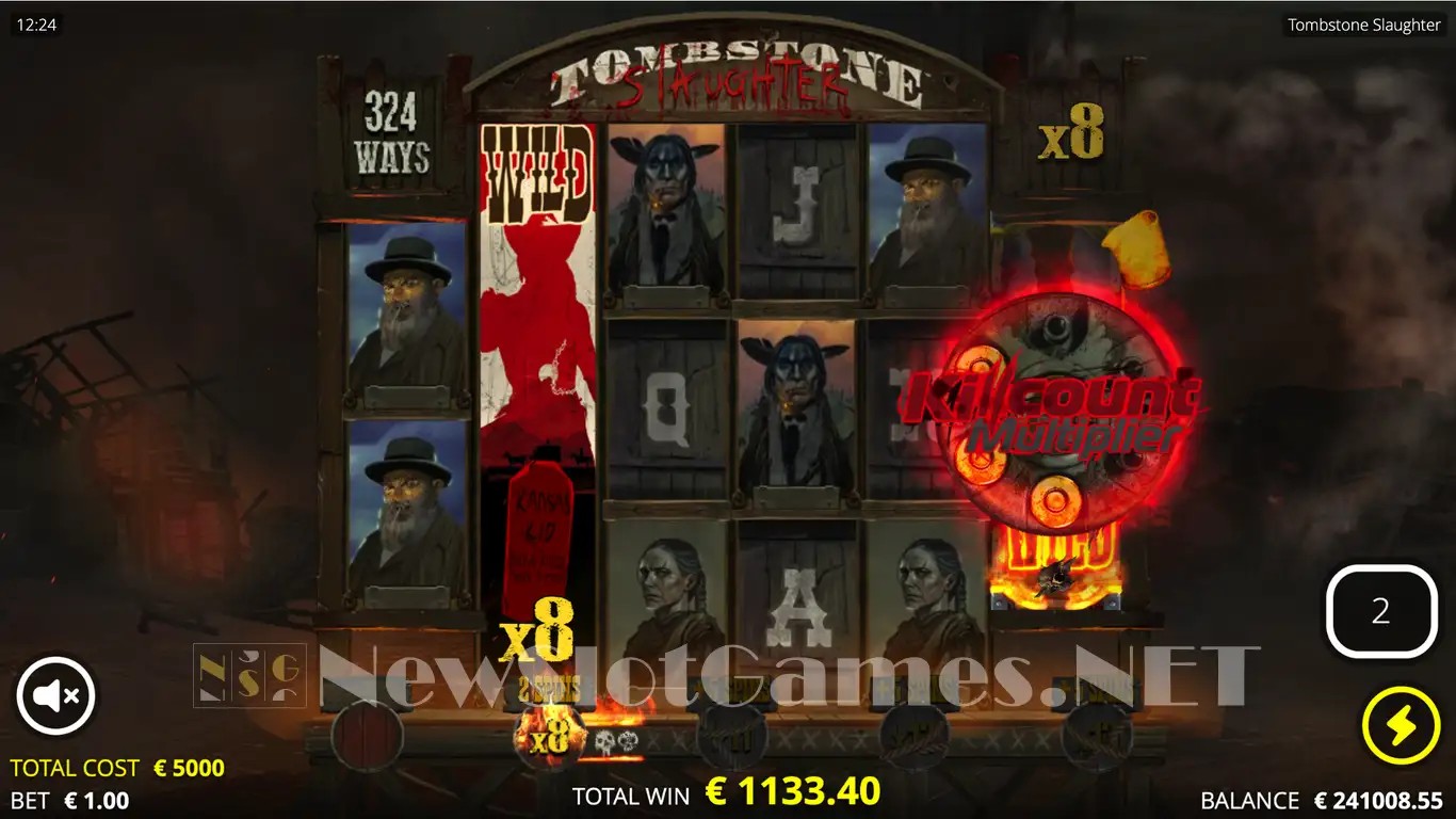 Tombstone Slaughter has 6 reels (2-3-3-3-3-2 symbols) and a total of 324 ways to win. It has an insane level of volatility, but it can also pay much more than the rest of its competitors, with a 500,000x top jackpot on the line. Its RTP can be alright, at 96.01%, but don’t let that fool you; it’s far from an average game. Among its features, you will discover the xNudge, Reel Split Wilds, Slaughter Spins, and Massacre Spins.