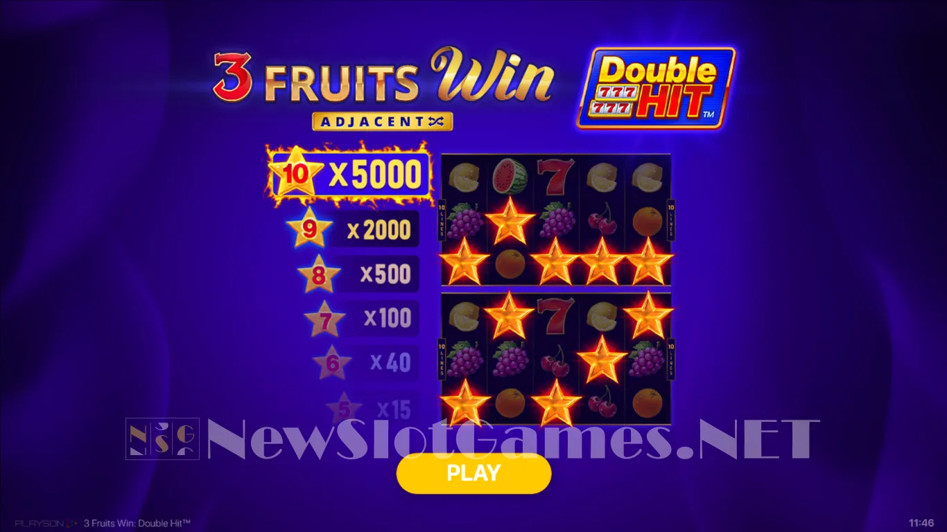 Yes! NewSlotGames offers the latest version of the 3 Fruits Win Double Hit demo game directly from Playson servers.