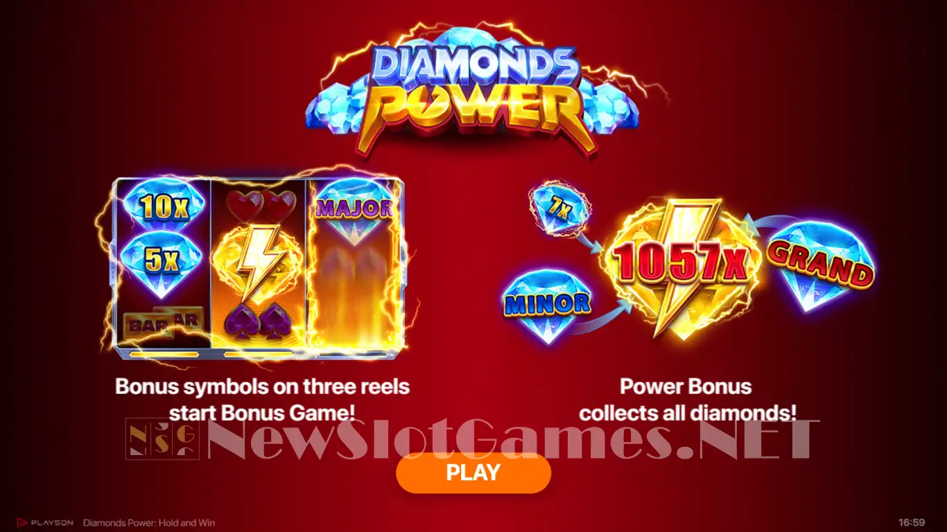 Yes! NewSlotGames offers the latest version of the Diamonds Power Hold and Win demo game directly from Playson servers.