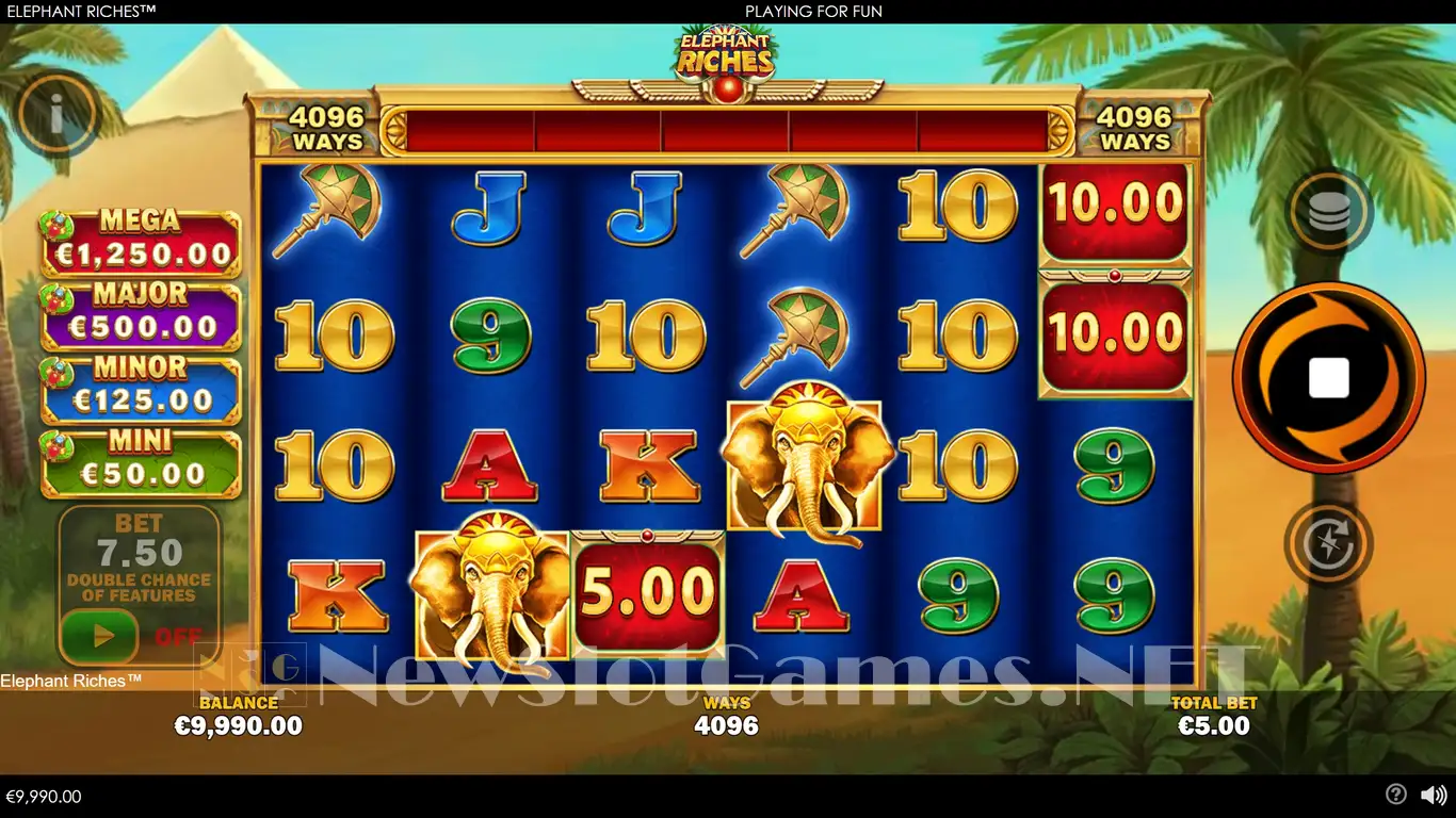 Yes! NewSlotGames offers the latest version of the Elephant Riches demo game directly from Playtech servers.