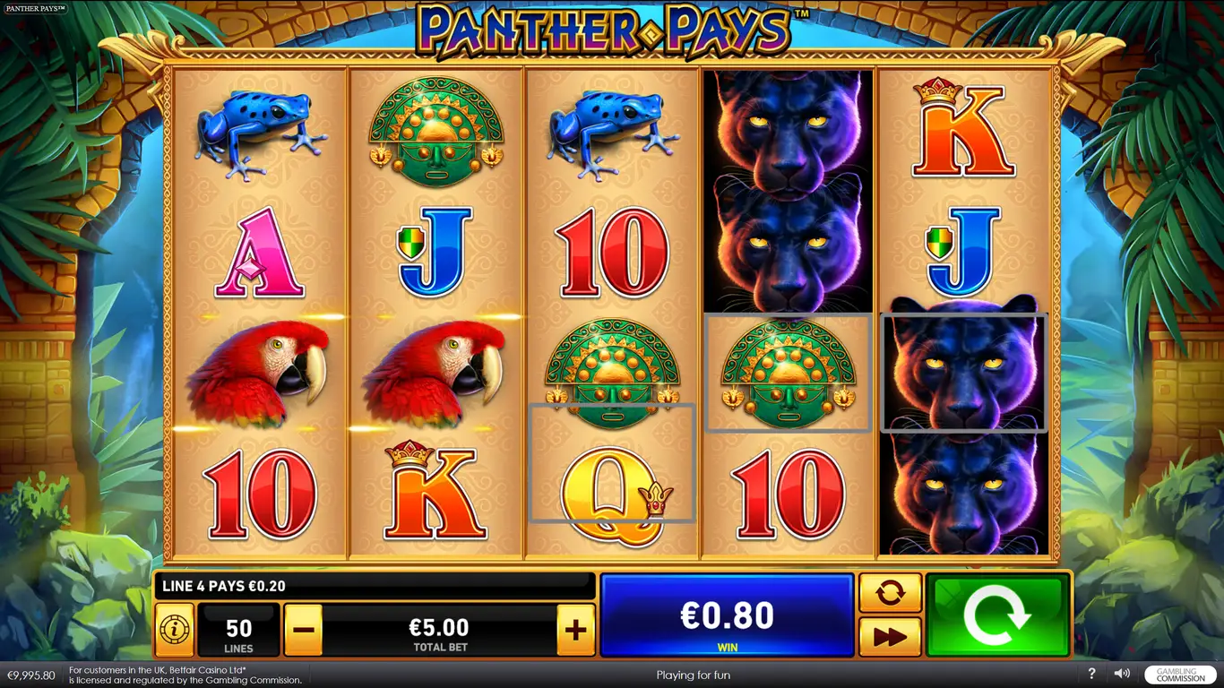 With the best wins of Panther Pays offering just 5x the stake, you have a winning combination which can pay $2,500 at most. You do have 50 of them though, so the jackpot can reach a good value, of $125,000. What it is in the end though, is a game with a potential of 250x the stake at most, which is very low for a slot machine. It doesn’t make the game quite as attractive to players, no matter what the features look like.
