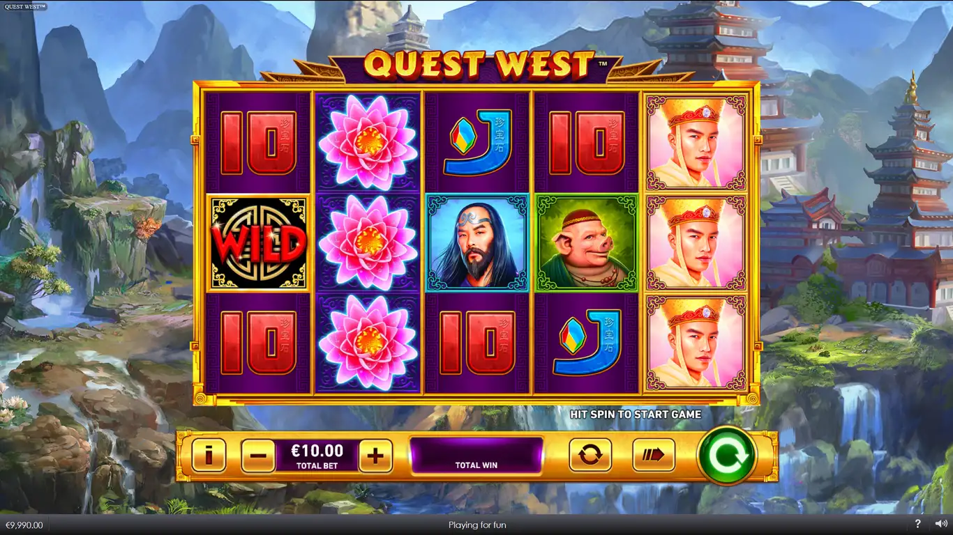 Quest West, the typical slot machine from Playtech as far as design quality is concerned, appears to be using the same Chinese legends as a couple of other games which are already out. The Monkey Warrior, the Pig Monk and other characters from the legends of China, are all present as some of the major symbols of this game.