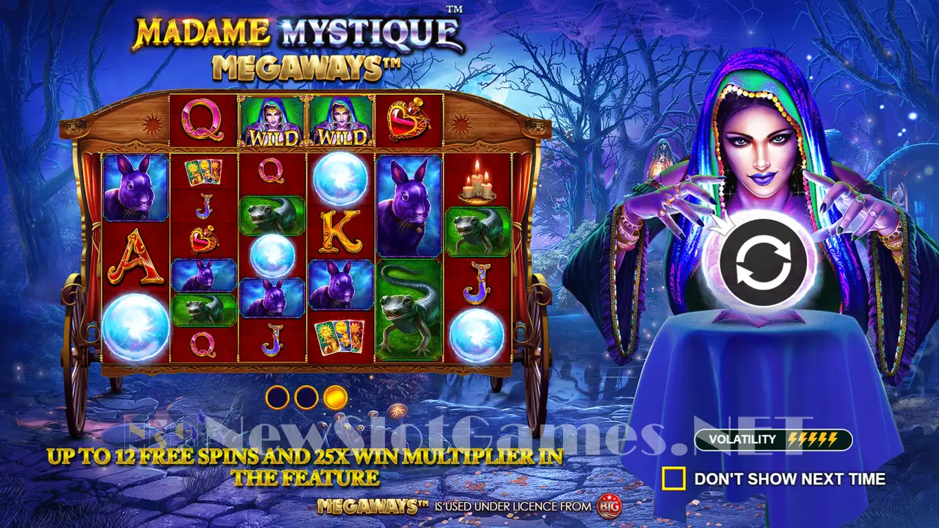 Yes! NewSlotGames offers the latest version of the Madame Mystique Megaways demo game directly from Pragmatic Play servers.