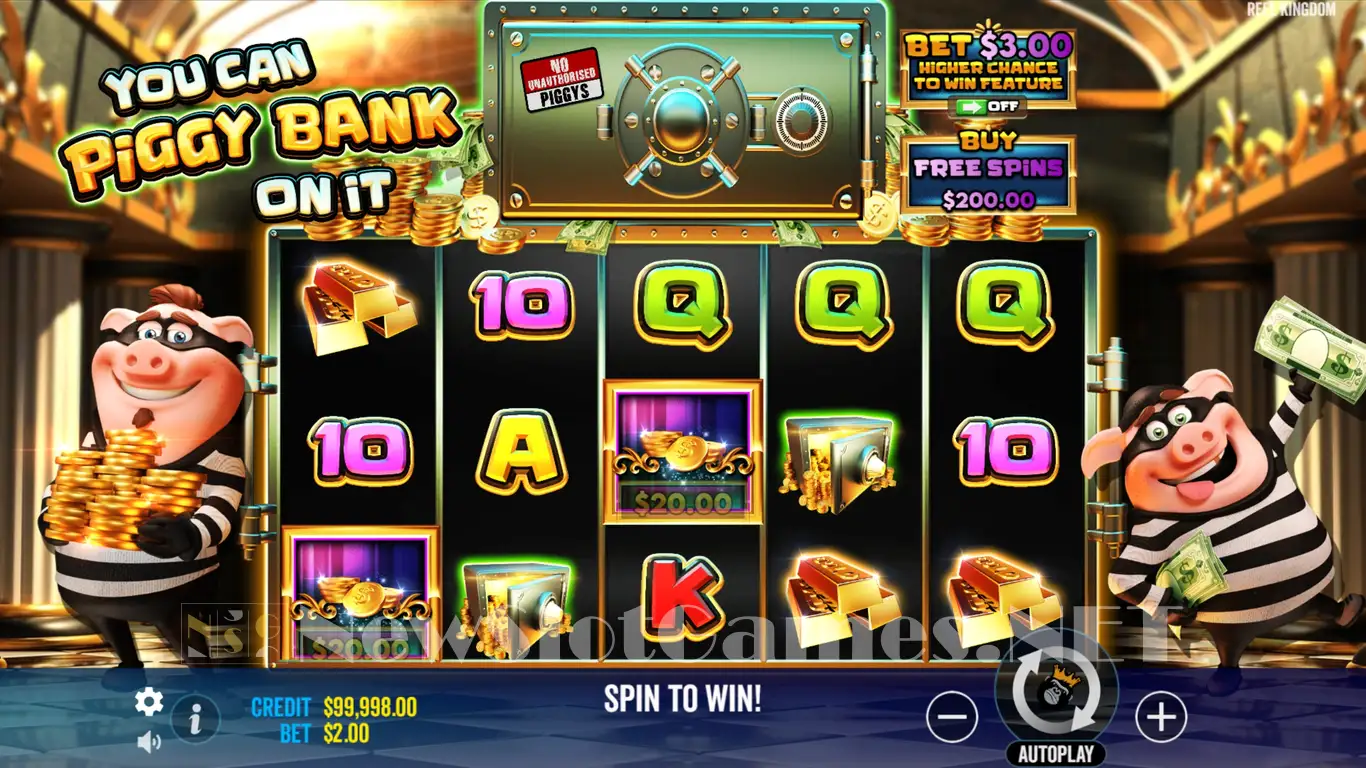 Pigs have long been associated with banks, mostly because of the piggy banks and their connection to money. For You Can Piggy Bank On It, Pragmatic Play decided to turn the pigs into bank robbers, which is not something that most slots from this category tend to do.