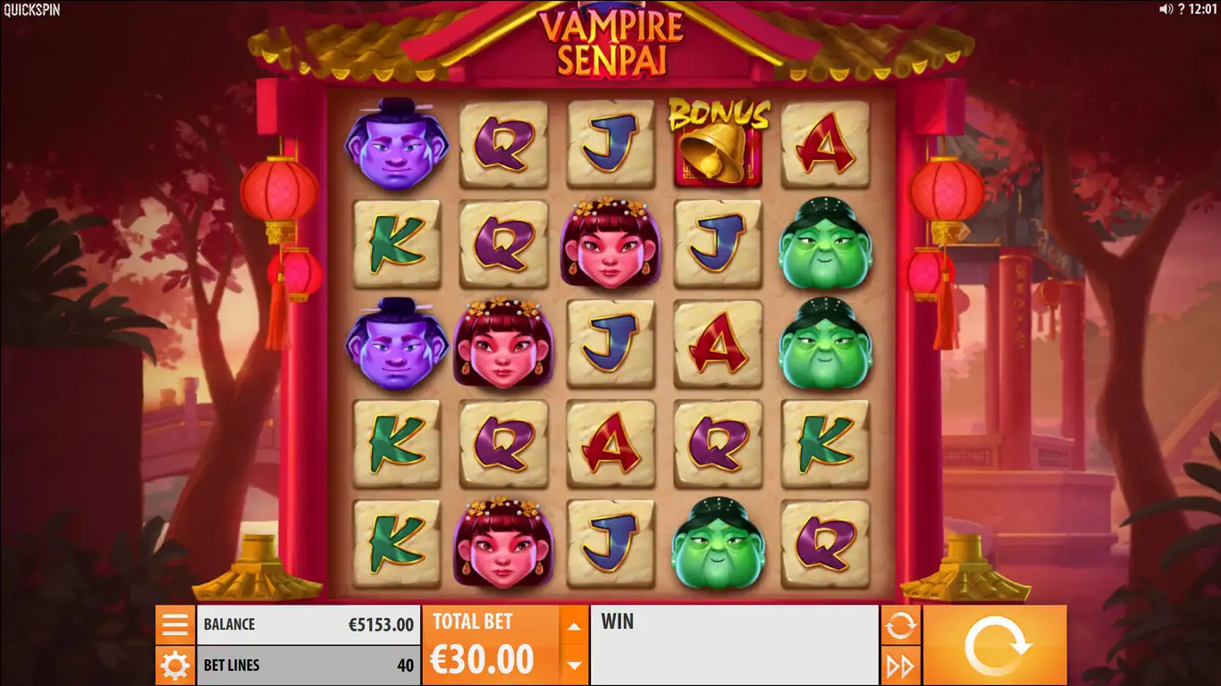 The Jiangshi, Chinese undead creatures that will drain a person’s life force, have inspired the design of Vampire Senpai. Quickspin designed the game to be cartoon-like, and non-threatening, so it can be fun for a lot more people. The high quality of the design is expected of Quickspin, and they didn’t disappoint. Royals are the ones of lower value, three characters are the medium symbols, while the features come via Jiangshi and bells.