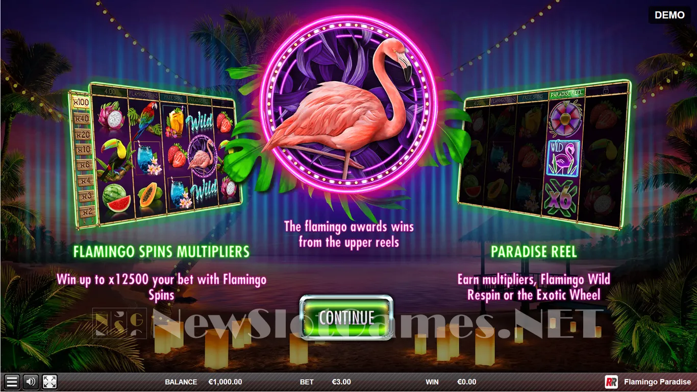 Yes! NewSlotGames offers the latest version of the Flamingo Paradise demo game directly from Red Rake servers.