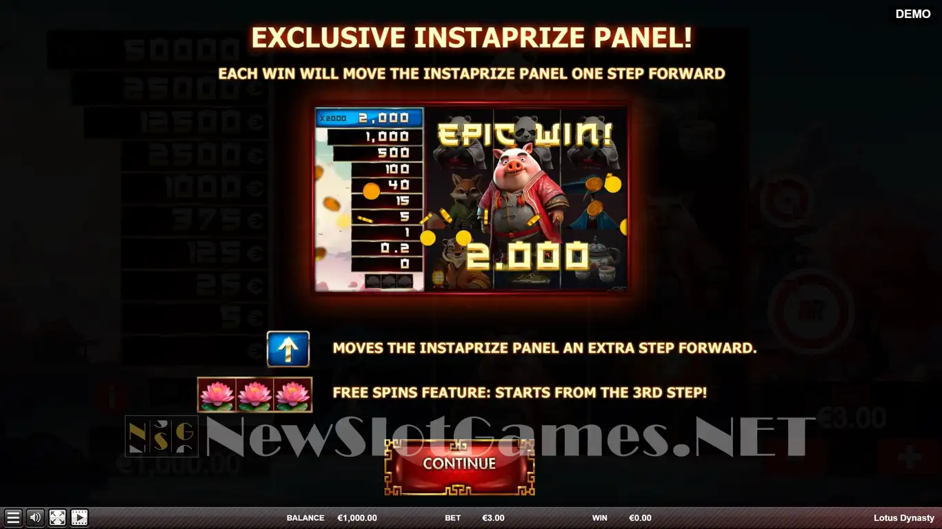 One of the basic features used in this slot will be the wild symbol, which is going to be used as a substitute. Another one will be the Bonus symbol, responsible for triggering the free spins. A lot of the excitement will come from Instaprize Panel, which will pay up to 2,000x.