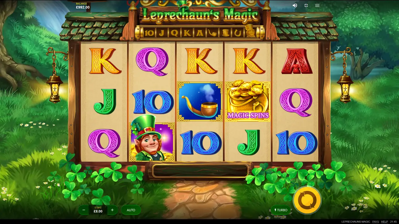 It’s the theme that is going to do the least for the slot, as there are plenty of other things that it has going for it. The Irish leprechaun has been used quite often in slots, and the whole luck element that it comes with seems to inspire developers in general. For Leprechaun’s Magic, Red Tiger crafted excellent graphics, but that’s not a surprise coming from them. You still get Royals for some of the symbols, but the better ones deliver horseshoes, top hats, pipes, leprechauns and pots of gold.
