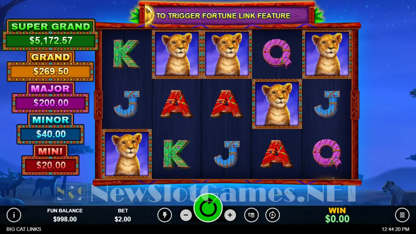 There are three major features to experience in the Big Cat Links slot demo. It starts with the Wild symbols, which are substitutes and top-paying symbols. There are Oversized symbols as well, which can give you Lions and Lionesses in versions that take over up to 3x3 positions. Finally, you can trigger free spins and the Fortune Link respins, so plenty of excitement will keep you around.