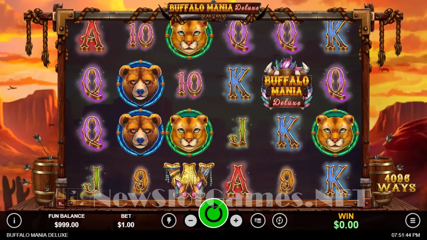 If you check out the Buffalo Mania Deluxe slot's features, you find that the wild is present among them, along with the Bonus Wheel (free spins, prizes, or the jackpot), or the random modifiers called Bursting Wilds and Major Mania (only during paid spins, and it expands the game area).