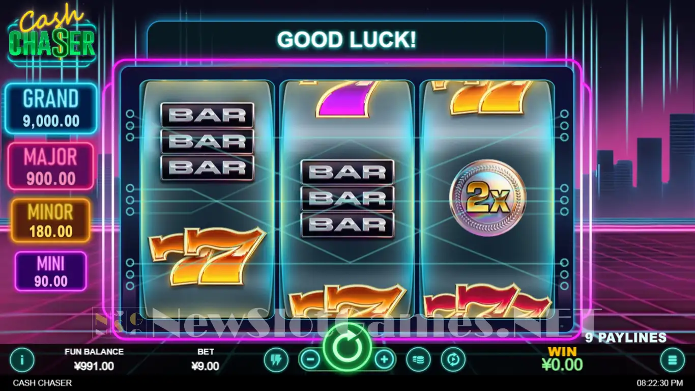 Cash Chaser is a classic 3-reel slot machine that’s available via RTG, a developer with a long history in game development. Payouts of up to 1,000x the stake (Grand Jackpot) are available. You have only 3x3 reels to play on, and there are a total of 9 active lines ready for you to create combinations on. The bets you get to use appear to start from $0.90 and could go up to $45 per spin.
